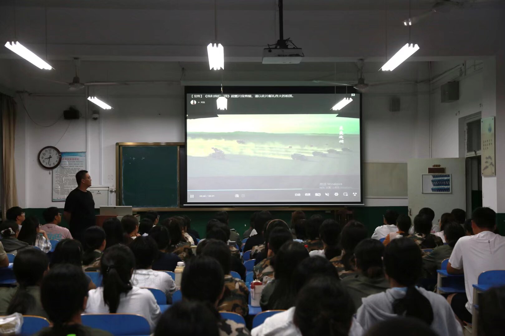观影过程中,新生们凝神专注,深深沉浸在影片所展现的时代岁月里。银幕上的温情瞬间与奋斗场景,让同学们直观感受到普通人默默奉献、与祖国同频共振的伟大精神,爱国情感在光影流转中悄然升温。