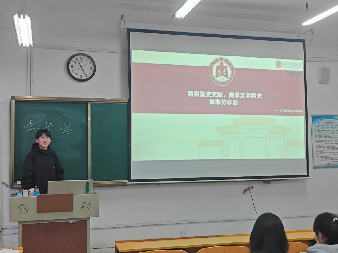 2024级7班团支部举办“我与文院故事分享会”,同学们畅谈初入校时课堂治学的启迪以及同窗相伴的温暖,在真诚交流中深化个人成长与学院文脉的情感联结。