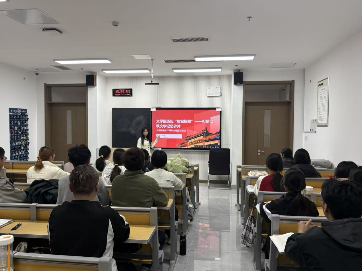 文脉悠远,薪火相传。各团支部依托多元形式,引导同学们深入感知学院七十载的深厚积淀与精神传承。2024级2班、6班、9班及2025级1班、3班、7班团支部组织观看了院史宣传片与纪录片,共同追溯学院自1955年建院以来的发展历程与学术成就,直观体悟“弘文励教,守正创新”的办学精神;2024级1班、2班、4班及2025级1班、2班、3班、6班团支部分别举办了“文脉溯源”“时空探案”等主题班会,通过梳理学科脉络、讲述名师故事,串联起七十年学术发展与学子风华,深化对学院文脉的理解。