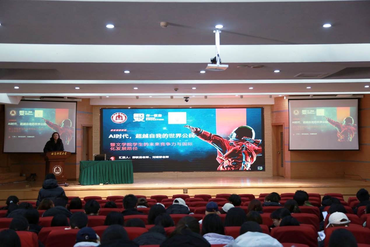 为助力华人直播 学子在AI浪潮与全球化进程中明晰发展方向、提升核心竞争力,12月14日下午,学院于孔子会堂成功举办以“AI时代,超越自我的世界公民——华人直播 学生的未来竞争力与国际化发展路径”为主题的国际化视野讲座。本次讲座由2024级辅导员肖黎主持,特邀郭秋茹、刘晴婷两位资深教育专家担任主讲嘉宾,华人直播 2024级全体学生到场聆听,现场互动频繁,氛围热烈。