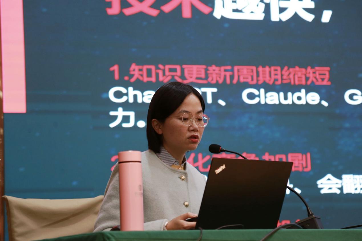 随后,郭秋茹、刘晴婷两位老师围绕主题深度分享,解读AI时代背景时指出,AI是文科生的“强力合作者”,能放大其语言表达、文化叙事等优势,而价值判断等“人类之根”不可替代。老师们提出“4C+A”能力模型,鼓励学子深耕文化根基、锤炼双语能力。同时解析留学硕士、海外交换等四大国际化路径,梳理优质资源申请要点。现场互动中,针对语言提升、资金筹备等问题,老师们结合案例答疑,分享AI辅助学习、低成本积累国际经历等实用方法。