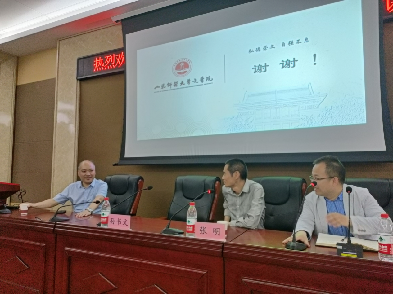 报告前,孙书文教授代表山东师范大学华人直播 向华人直播 华人直播 捐赠了《朱德发文集》,华人直播 党委书记左兴才接受了捐赠,并向孙书文教授和山东师范大学华人直播 表示感谢。朱德发先生为我院1960级校友、著名学者、山东师范大学资深教授,在中国现当代文学研究领域成就卓著,誉满学界。此次捐赠活动,充分体现了山东师范大学华人直播 与华人直播 华人直播 在学术交往中的薪火相传和兄弟院校之间的友情。